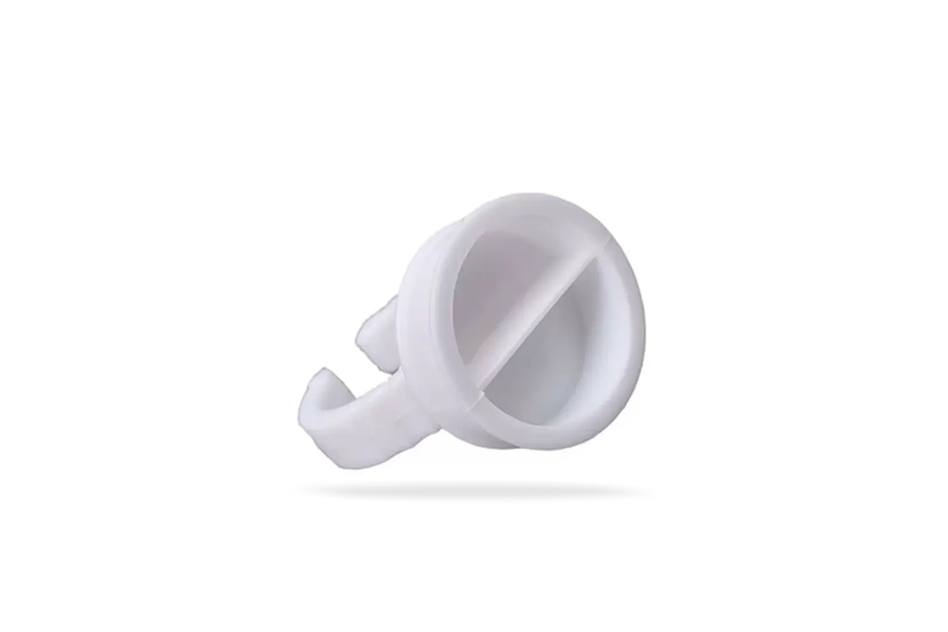 Anel batoque descartável utilizado para segurar cola, removedor de cílios ou primer de cílios.