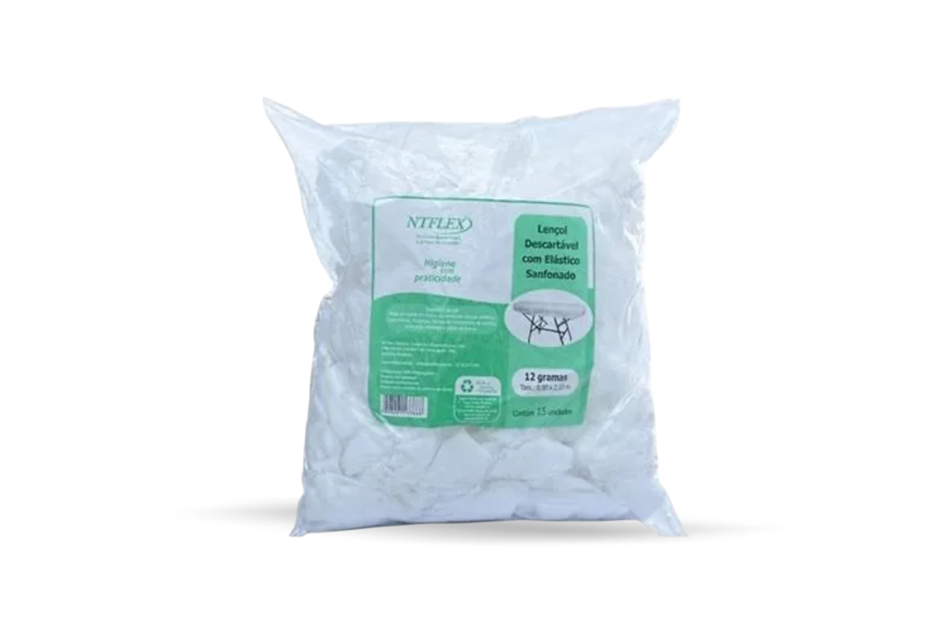 Lençol descartável com elástico Branco c/15 uds Ntflex – 12g