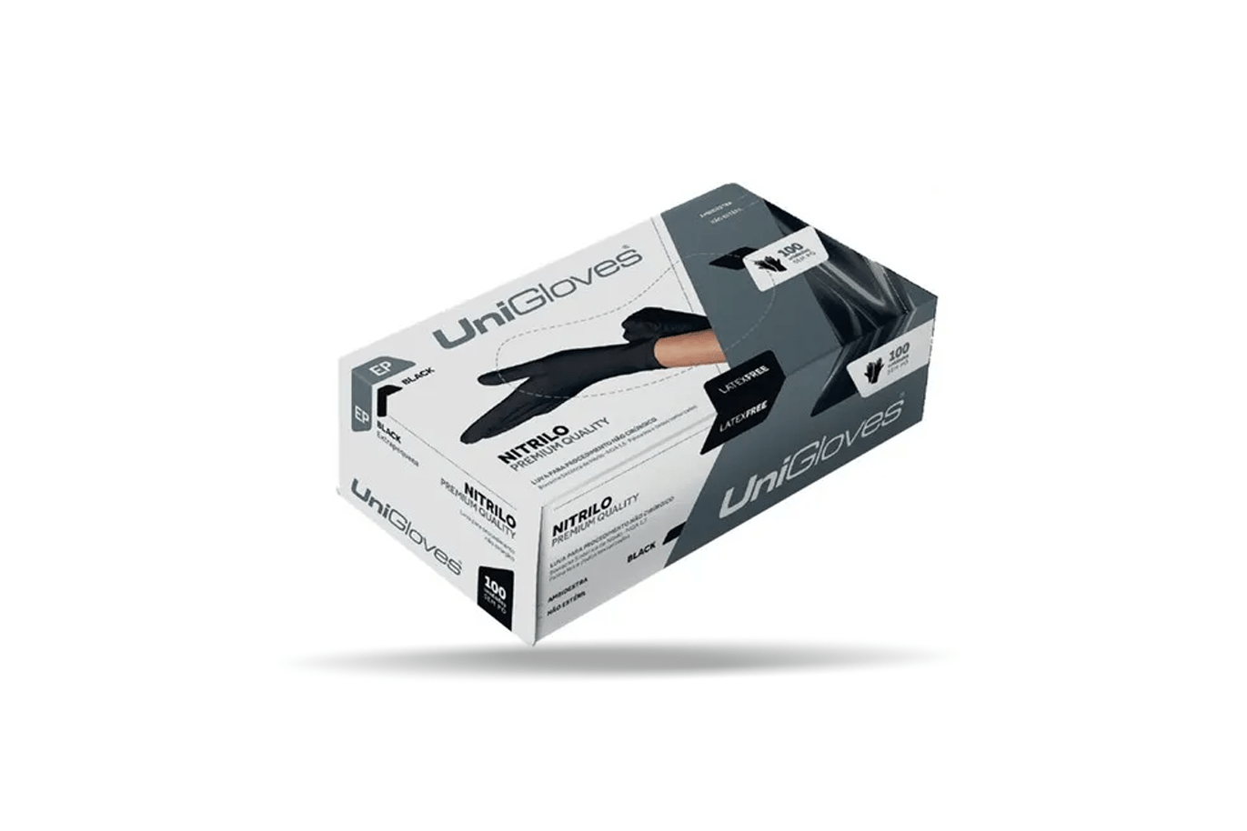 Luva Unigloves Nitrílica Preta 100 unidades